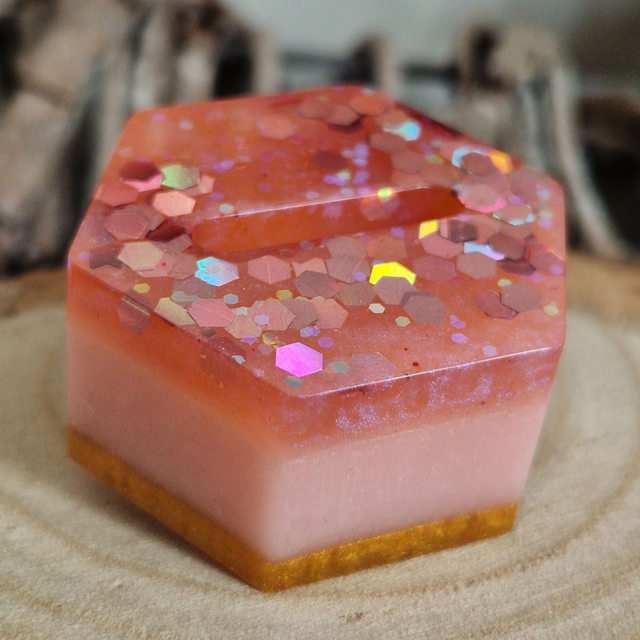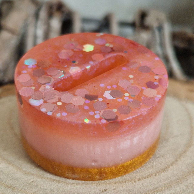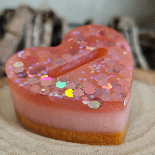 This is a single slot resin ring holder in a 'Strawberry Cheesecake' design.